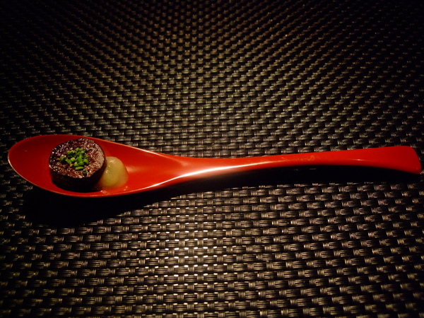 今天侍酒師很大方的請我們喝紅酒,他說這瓶紅酒是ROBUCHON特選的。很好入口,味道不會太,滿適合中午喝,也適合搭配魚類料理和牛排。
