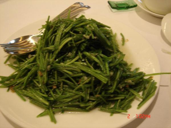 清炒水蓮菜。兒子非常愛吃。在一堆油膩的菜中發揮了去膩的功能。