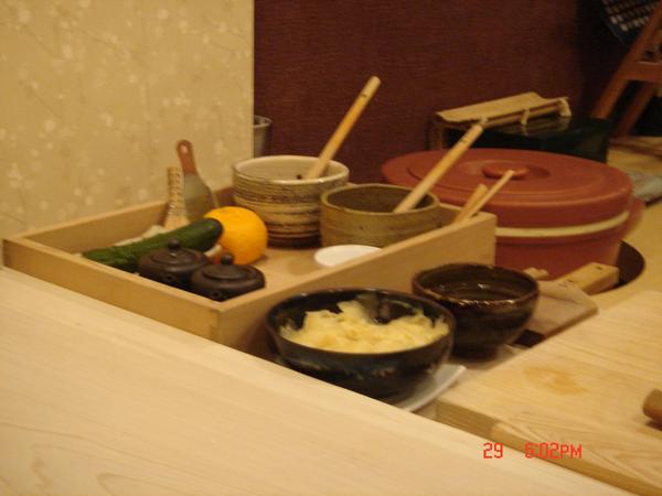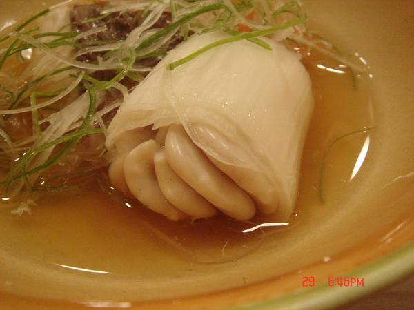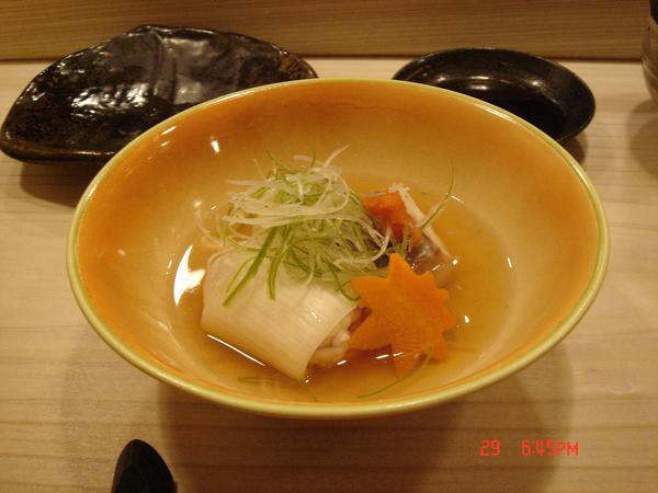 蒸鯛魚跟鱈魚魚白,日本大蔥包魚白還蠻特別的我這鄉巴佬沒吃過,這個湯好喝,老婆還跟師傅請教做法
