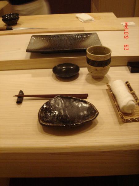 這間壽司是看過幾個日本料理食記達人部落格知道的,評價褒貶不一,後來去日本吃了幾間壽司店,回國實在很想念江戶前的口味,就去嚐試看看,本來當天我就有帶照相機,無奈我平常太好命,都有老婆代拍,真的輪到自己來,前三道都下肚才想到要拍,索性就不拍專心吃,這次我帶老婆一起來,一開始她還不太樂意來,經我好說歹說,她才點頭,這樣一方面我可以專心品嘗,又能有食記,她也能換換口味.真是一舉數得,爲了怕東西不好吃被打槍,特別定位前有吩咐阿明師傅先準備一些好料的