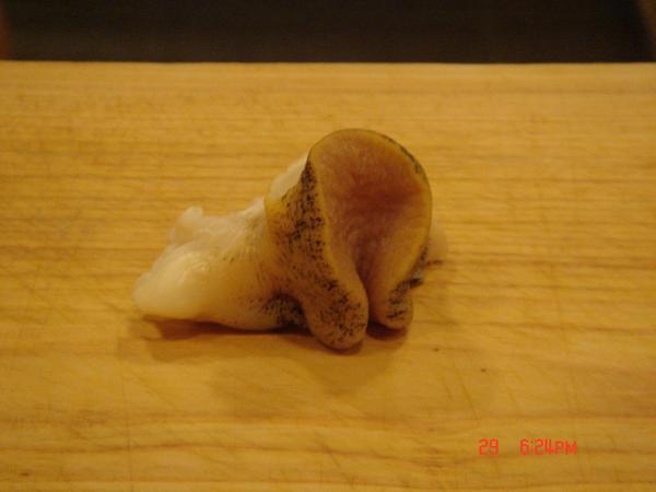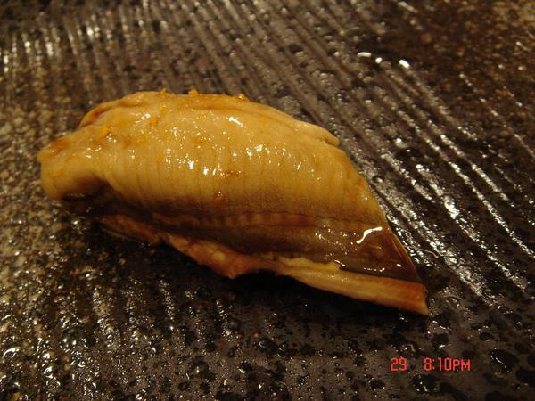 小鮑魚,已經很不錯了,但是人家還是喜歡日本還有先前在野壽司吃到的大鮑魚,下次請師傅準備大的來吃,不過錢可能會不夠,到時先來把小亨利的撲滿打破補貼一下好了