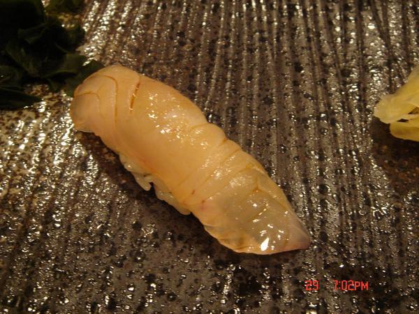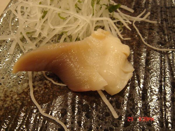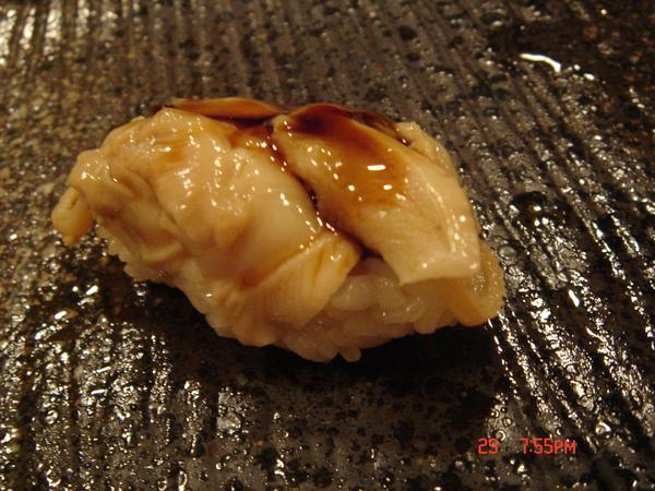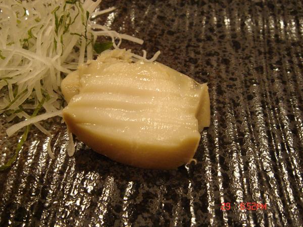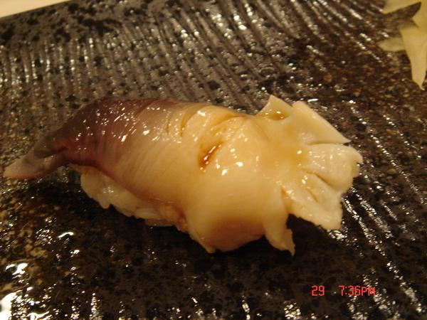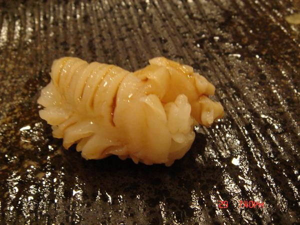 北寄貝,灰灰的不同於迴轉壽司看到的是紅色,這邊的北寄貝只燙半熟很甜口感也很好
