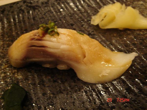 文蛤的握壽司,今天的文蛤小了點,但是大有大的可愛小有小的靈巧配上甜甜的醬,我覺得非常可口