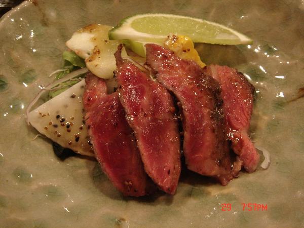 微炙牛肉生菜沙拉,吃了半天的魚換個口味,聽說冰箱還有更好的牛肉,不要藏了,下次記得拿出來