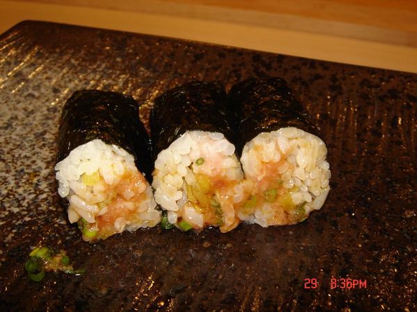 鮪魚黃瓜蔥花鐵火卷,加了醃黃瓜多了清脆的口感