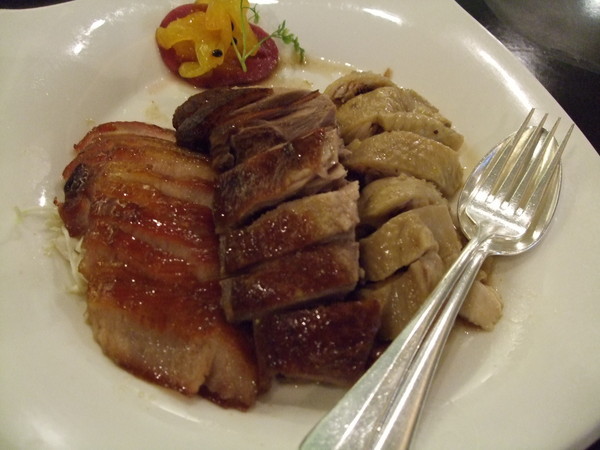。松阪豬、沙薑玉米雞和掛爐燒鴨。松板豬叉燒,燒鴨還不錯,玉米雞不怎樣